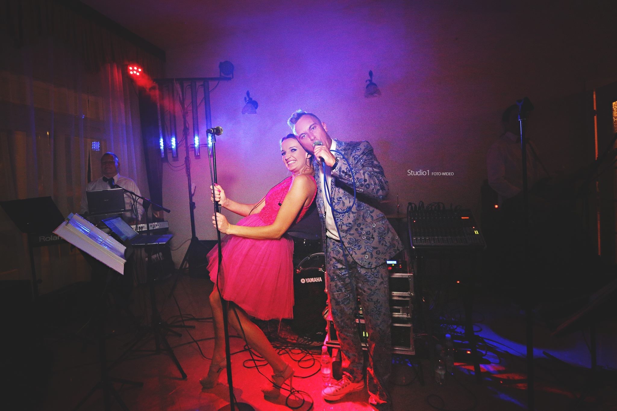 keyboardu, perkusji oraz gitary elektrycznej. Mamy wokalistkę oraz wokalistę-wodzireja-saksofonistę. W swojej pracy