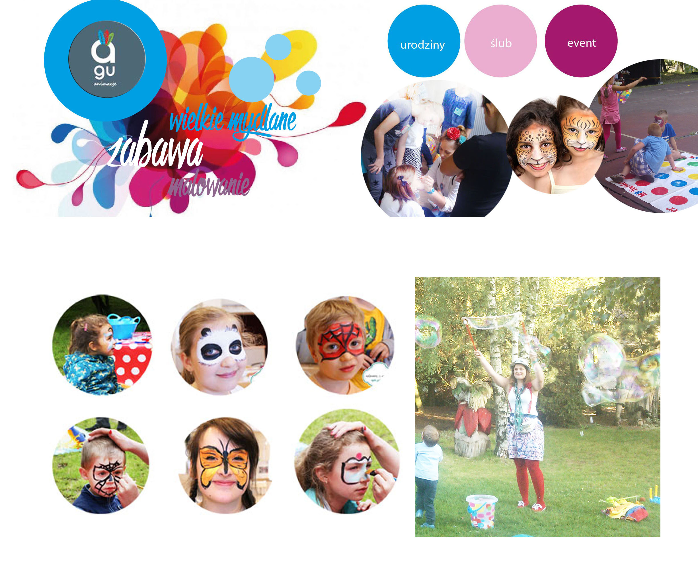 Specjalnie stworzony program animacji dla tych najmłodszych i starszych dzieci. W programie m.in. malowanie buzi, zabawy z animacyjnymi zabawkami, bańki mydlane XXL, balonowe stwory. Nasze animacje układamy ze względu na wiek dzieci i miejsce animacji. Zapraszamy do kontaktu ,chętnie odpowiemy na każde pytanie.