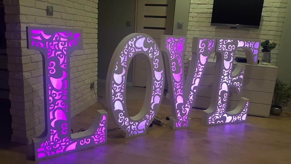 Piękny Napis Love w 4 kolorach, który zachwyci fotografów przy sesji zdjęciowej i nie tylko.