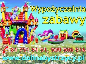 WYPOŻYCZALNIA ZABAWY wypożyczy Ci sprzęt do zmontowania super imprezy :-) Dysponujemy urządzeniami pneumatycznymi (zamki dmuchane, kule sferyczne, zjeżdżalnie), maszyną do waty cukrowej i popcornu a także balonami z helem zamkniętymi w pudełku...