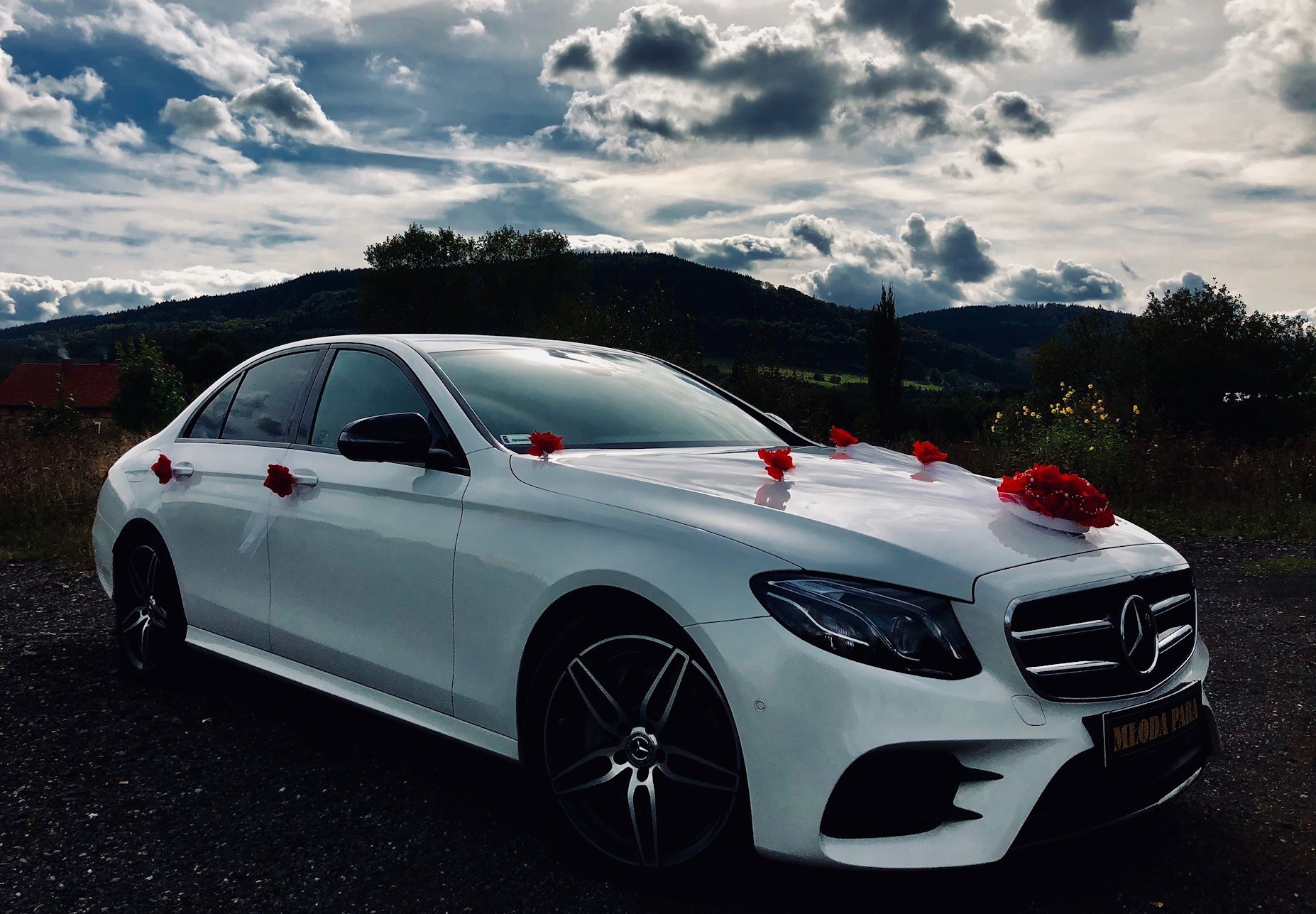 - Przystrojenie auta (kolor do wyboru) - sztuczne dekoracje na przedniej masce oraz bokach/klamkach. Przystrojenie kwiatami uzgadniane jest indywidualnie