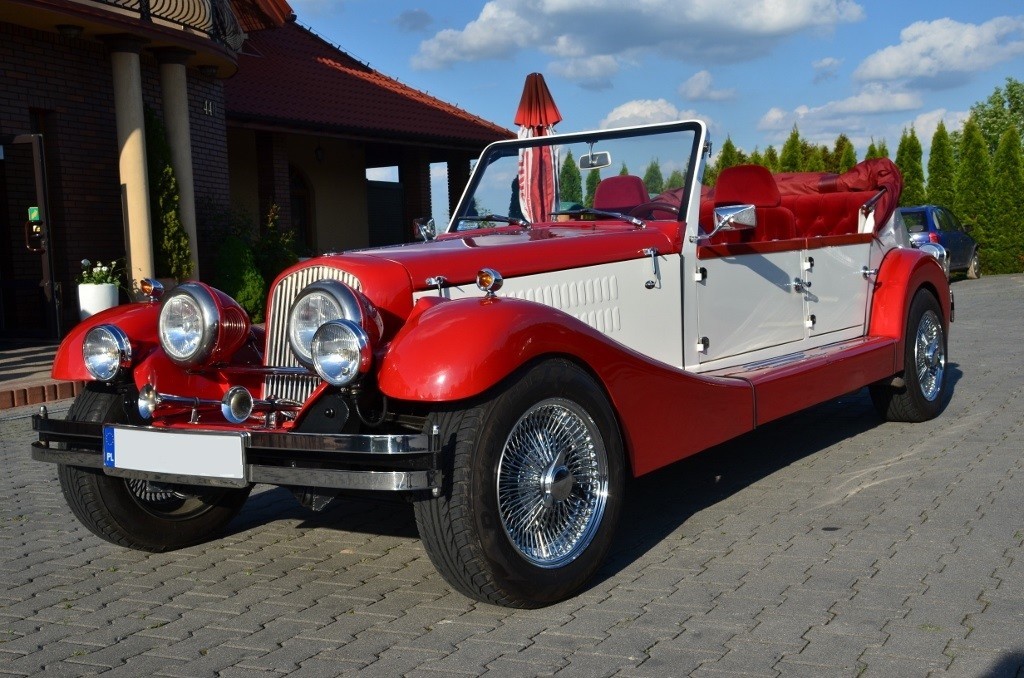 Samochód w stylu retro. Do wynajęcia do ślubu jak i na inne uroczystości. Kabriolet z rozkładanym dachem i ogrzewaniem.