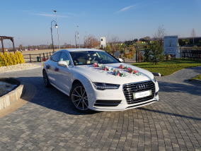 W swojej ofercie posiadamy następujące samochody do ślubu : 1. Dwa nowe białe Audi A7 . Samochody nowe zakupione w wrześniu 2017r. Bogato wyposażone . Skórzane podgrzewane wentylowane siedzenia, klimatyzacja 4 strefowa, 8 poduszek powietrznych...