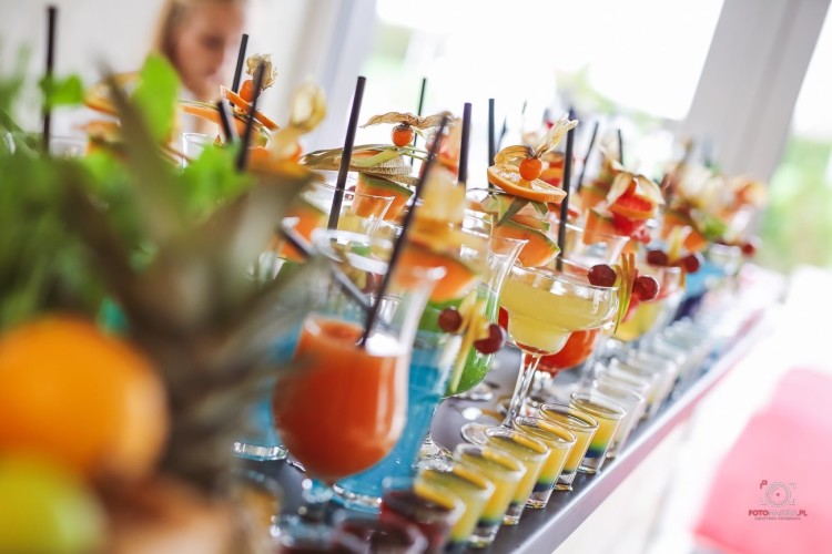 Nasi goście znajdą na barze kartę drinków, bogatą w różnorodne smaki, które trafią w każdy gust. Dla gości niepijących alkoholu oferujemy napoje z menu bez dodatku alkoholu lub inne wybrane przez państwa koktajle bezalkoholowe. U Nas każdy drink jest ozdobiony świeżymi owocami i molekularnym suchym lodem, co daje niesamowity efekt.