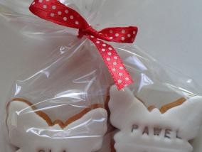 Piernikowe podziękowania dla gości to jest to czego nie może zabraknąć na Twoim przyjęciu. Pierniczki zapakowane w woreczek celofanowy, przewiązane kokardą w wybranym kolorze. Można skorzystać z gotowych rozwiązań bądź zaproponować coś swojego wyją...