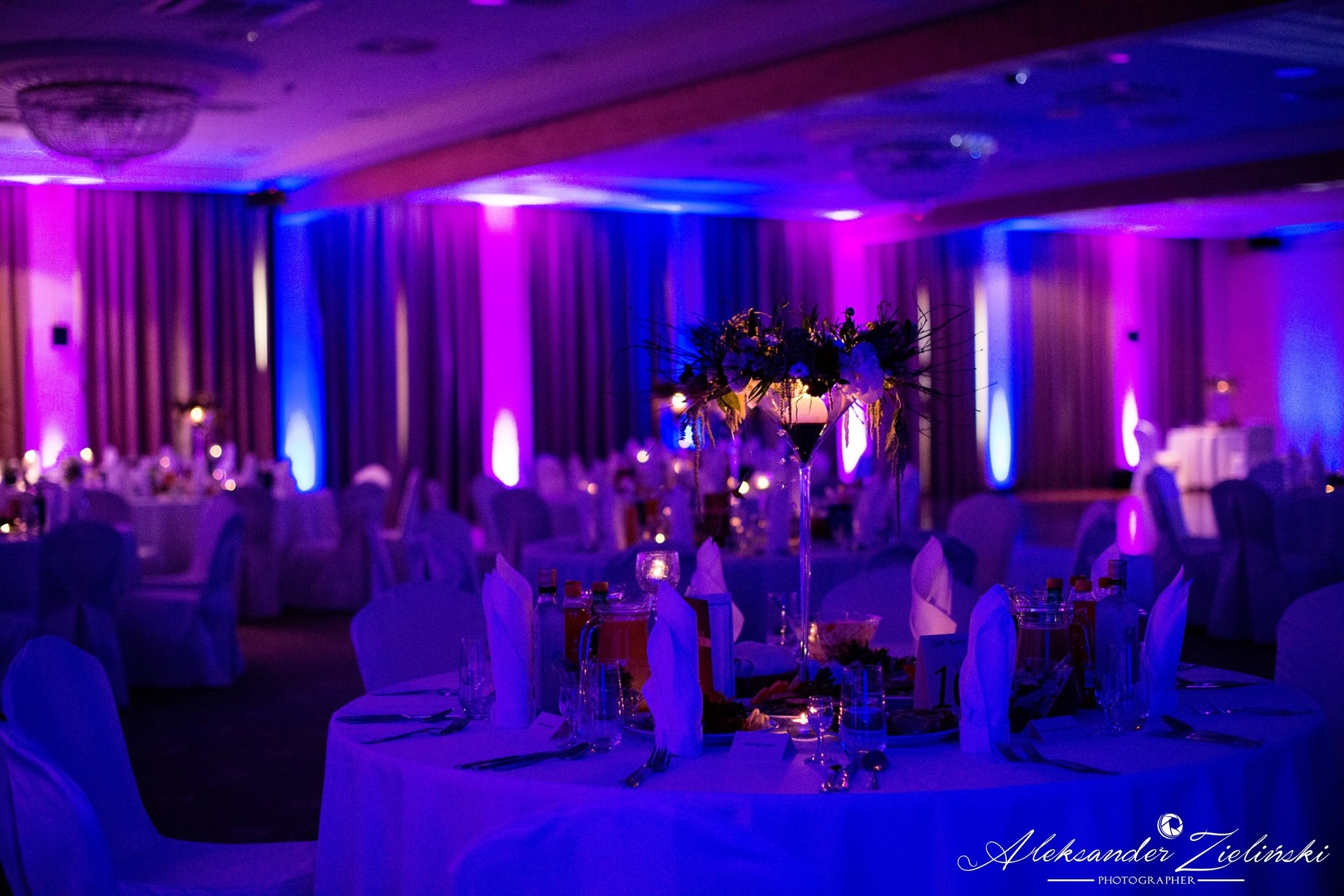 Dekoracja światłem sali weselnej sprawi, że Wasza impreza będzie wyjątkowa i elegancka, a goście będą pod dużym wrażeniem.