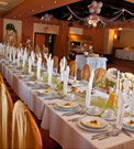 Oferujemy dużą, klimatyzowaną salę bankietową (do 120 osób). Do Państwa dyspozycji jest również ogródek ze stolikami na zewnątrz lokalu.
