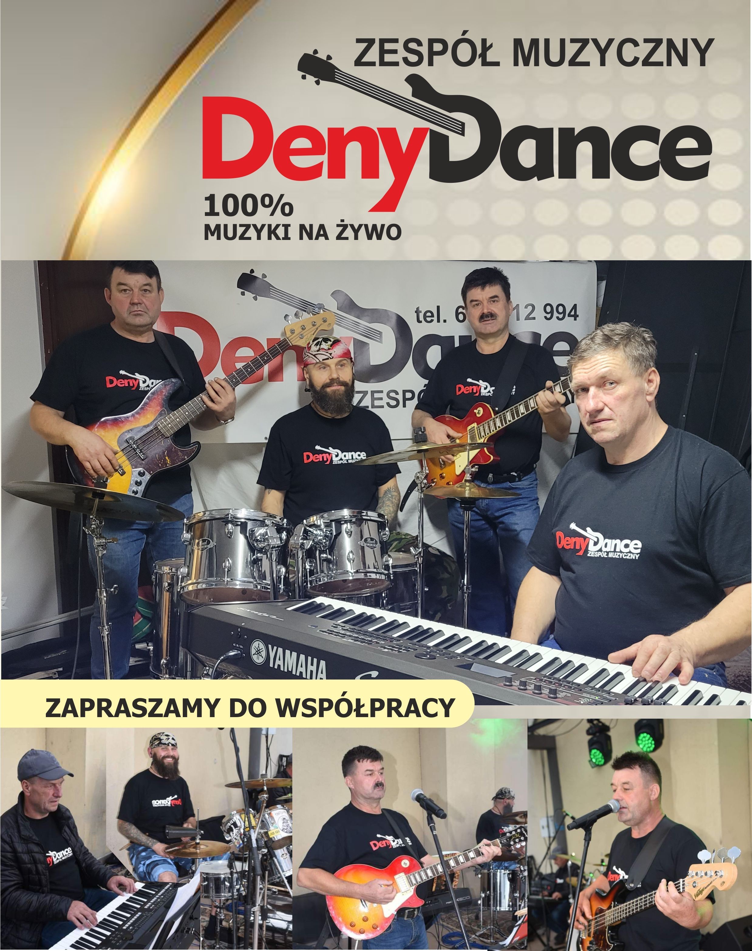 O nas Instrumenty: akordeon gitara basowa gitara elektryczna keyboard/organy perkusja Oferta: gramy na żywo prowadzimy zabawy efekty świetlne granie na błogosławieństwie przed ślubem W składzie: wokalista Liczba osób: 4 Jesteśmy profesjonalnym, energetycznym, grającym absolutnie na żywo zespołem muzycznym tworzonym przez ludzi, którzy z pasją podchodzą do tego, co robią. Jeśli macie Państwo dosyć słuchania sztucznych, "plastikowych" brzmień z playback-ów, plików midi, gotowych podkładów czy "styli", to jesteśmy do Państwa dyspozycji. Perkusja, gitara, gitara basowa, instrumenty klawiszowe, dwoje dedykowanych wokalistów. Gramy również kawałki biesiadne z akordeonem do stoły. Dźwięki grane wyłącznie na żywo, pogoda ducha, radość muzykowania, doskonałe przygotowanie warsztatowe oraz doświadczenie sceniczne, to cechy za które warto nas polubić :). Karierę muzyczną rozpoczęliśmy w latach 80, po kilkuletniej przerwie wznowiliśmy działalność. Gramy na terenie całego kraju. Cena uzależniona od odległości i ilości osób w zespole. Do każdej imprezy podchodzimy indywidualnie, więc razem ustalimy wszystko od początku do końca, jak miało by wyglądać wasze przyjęcie i w jakim klimacie miało by być prowadzone ;) Gramy każdy rodzaj muzyki, m.in. lata 80’, 90’, muzyka współczesna, popularna, góralska i weselna. Gramy na terenie całego kraju. powyżej 100 km doliczamy koszty paliwa.