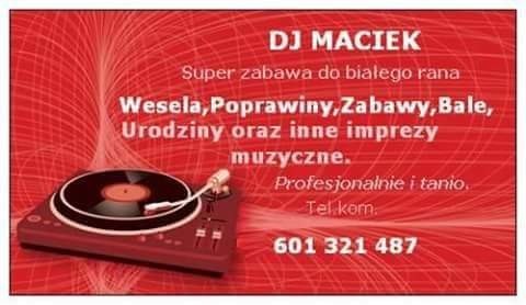 Witam wszystkich.Proponuję swoje usługi jako DJ i Wodzirej na wesela i nie tylko.Prowadzeniem różnego typu imprez zajmuję się od ponad 25 lat ,a więc posiadam duże doświadczenie.Posiadam własny sprzęt nagłośnieniowy oraz oświetleniowy.Zapraszam serdecznie.Pozdrawiam DJ Maciek.