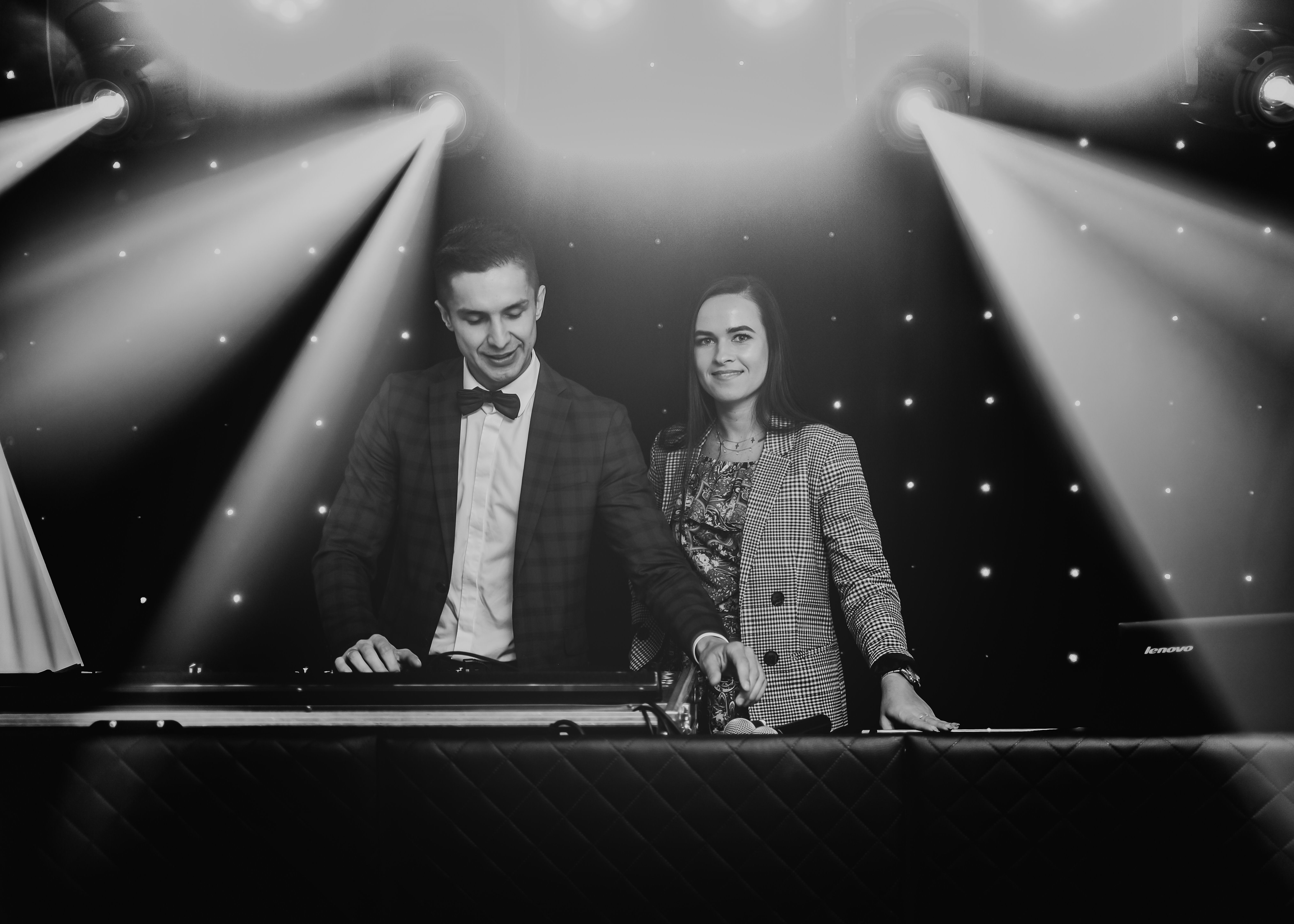 Jesteśmy agencją muzyczną zajmującą się prowadzeniem przyjęć weselnych, eventów firmowych i imprez okolicznościowych. Cechuje nas maksimum zabawy - a minimum przerw, wiedza i umiejętności. Stawiamy na jakość i kreatywność! -MUZYKA- Jako członkowie polskiej organizacji zrzeszającej profesjonalnych DJ z muzyką i prawem do jej publicznego odtwarzania, prezentujemy utwory w oryginalnym wykonaniu i najwyższej jakości dźwięku. Wykorzystujemy do tego pliki MP3, płyty CD i płyty winylowe dla koneserów dobrego dźwięku. Przedstawiamy muzykę polską i zagraniczną - od największych przebojów lat 60-tych po hity współczesne. Dobieramy muzykę w czasie rzeczywistym, bez powielania schematów. Gramy utwory na życzenie. Naszym celem jest zadowolenie muzyczne wszystkich gości! Nasza biblioteka i wiedza muzyczna pozwoli zadowolić gusta wszystkich gości! Prezentując muzykę - prezentujemy naszą pasję!