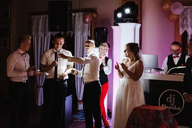 Dj Pisanka i Brygida to najlepszy wybór! Prowadzili nasz ślub plenerowy, a później całe wesele, aż do ostatniego gościa. Już przed przybyciem Młodej Pary zapewnili czekającym gościom wspaniałą klimatyczną oprawę muzyczną wraz z czytaniem wierszy, goście byli zachwyceni! Żałuje, że sama jako Panna Młoda to przegapiłam :) Zabawy były prowadzone na najwyższym poziomie, goście chętnie w nich uczestniczyli, bez względu na wiek. Rycerskie oczepiny ze świecami zrobiły świetny klimat, który połączony z podziękowaniami do rodziców sprawił, że ta wyjątkowa chwila była wyjątkowo podniosła. Reasumując... każdy z gości chwalił i zachwycał się profesjonalizmem duetu Dj Pisanaka&Brygida,fachowe rady przed samym weselem jak również ich uśmiech i pomoc w każdej chwili uroczystości uważam za nieocenione! Jako Panna Młoda polecam ich każdej parze, która chce aby te wyjątkowy dzień był idealny! Dziękuję, że dzięki Wam mogłam się dobrze bawić i nie musieć niczym martwić i stresować!