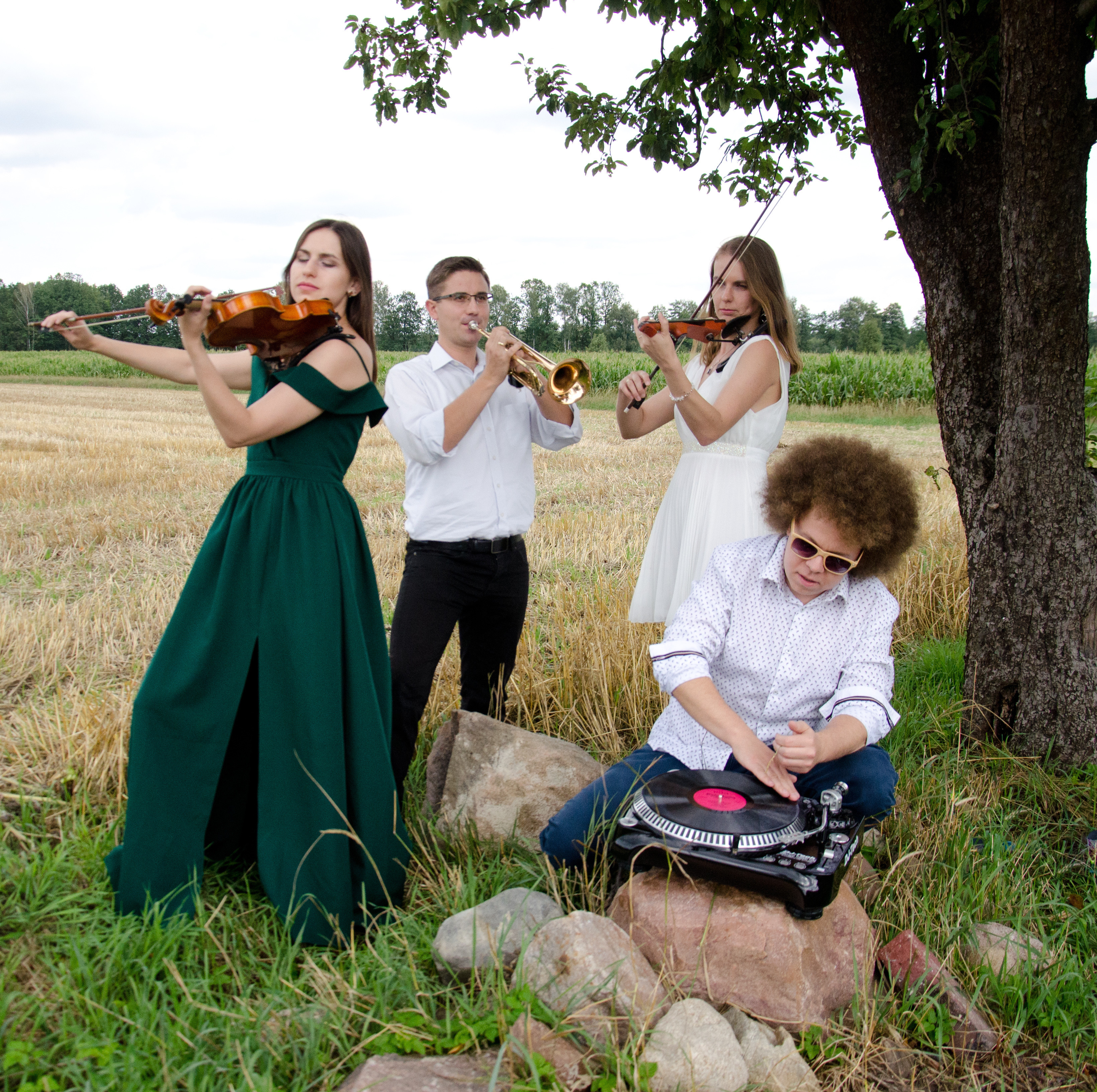 W skład zespołu wchodzi wokalistka, skrzypce klasyczne i elektryczne, trębacz oraz DJ.