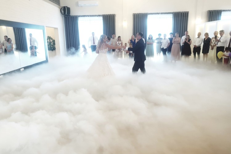 Oferuje usługę pierwszego tańca w chmurach. Ciężki dym kłębi się delikatnie nad ziemią sprawiając wrażenie, jakby para tańczyła w chmurach. Podobny efekt uzyskuje się w programie "Taniec z gwiazdami". Taniec w chmurach jest idealny dla par, które świetnie dają sobie radę na parkiecie jak i również dla tych, którym przychodzi to trudniej. Dym zasłoni małe wpadki i ukryje niedoskonałości w tańcu, odsłoni natomiast to co najważniejsze, czyli szczęście na twarzach Młodej Pary. Fotograf będzie miał niepowtarzalną okazję do zrobienia niebanalnych zdjęć podczas tańca, a zaproszeni goście będą oczarowani Waszym występem.