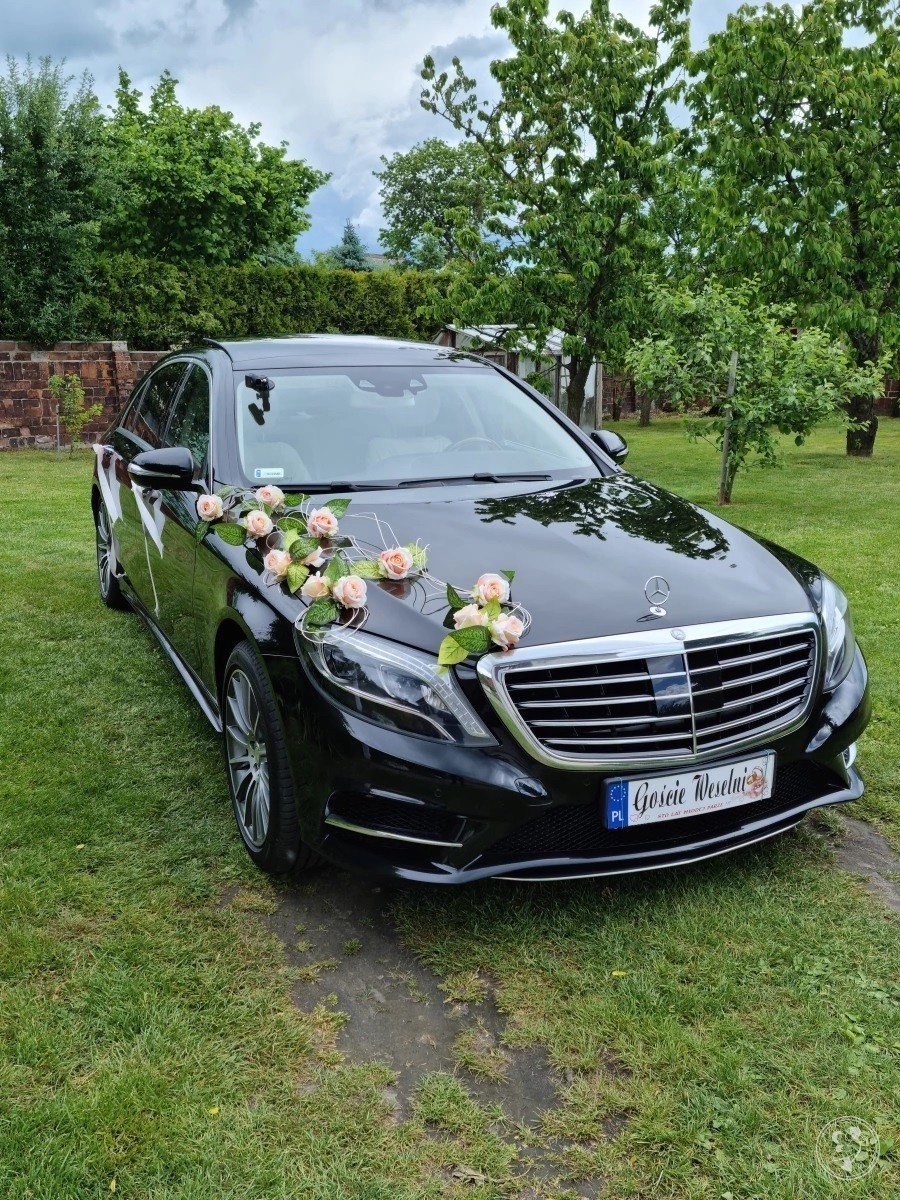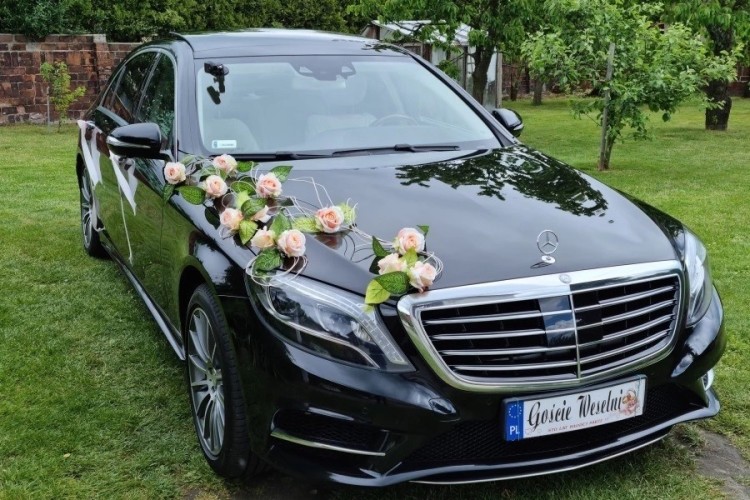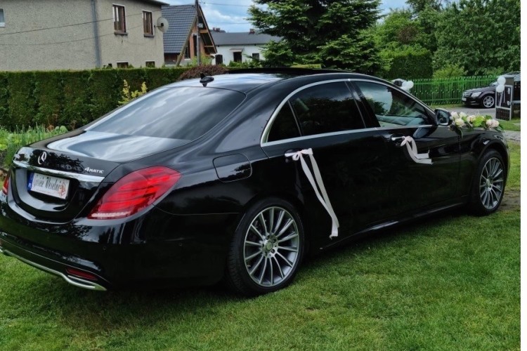 Oferujemy Państwu wynajęcie na uroczystość ślubną oraz weselną prestiżowej limuzyny marki Mercedes S-Klasa w przedłużanej wersji LONG w kolorze obsidian black oraz pięknym jasnym wnętrzem.