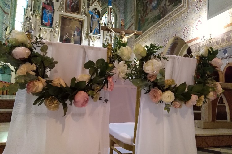 całościową oprawę florystyczną Pary Młodej i Świadków.