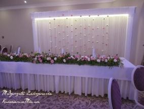 Oferta dotyczy wypożyczania dekoracji z sztucznych kwiatów. Pełna oferta zawiera wypożyczenie: 12 kul kwiatowych (średnica ok 40 cm), 12 szkieł martini (wys 70 cm), głównej kompozycji kwiatowej (dł. 120 cm) , konstrukcji dekoracyjnej (tło za młodą pa...