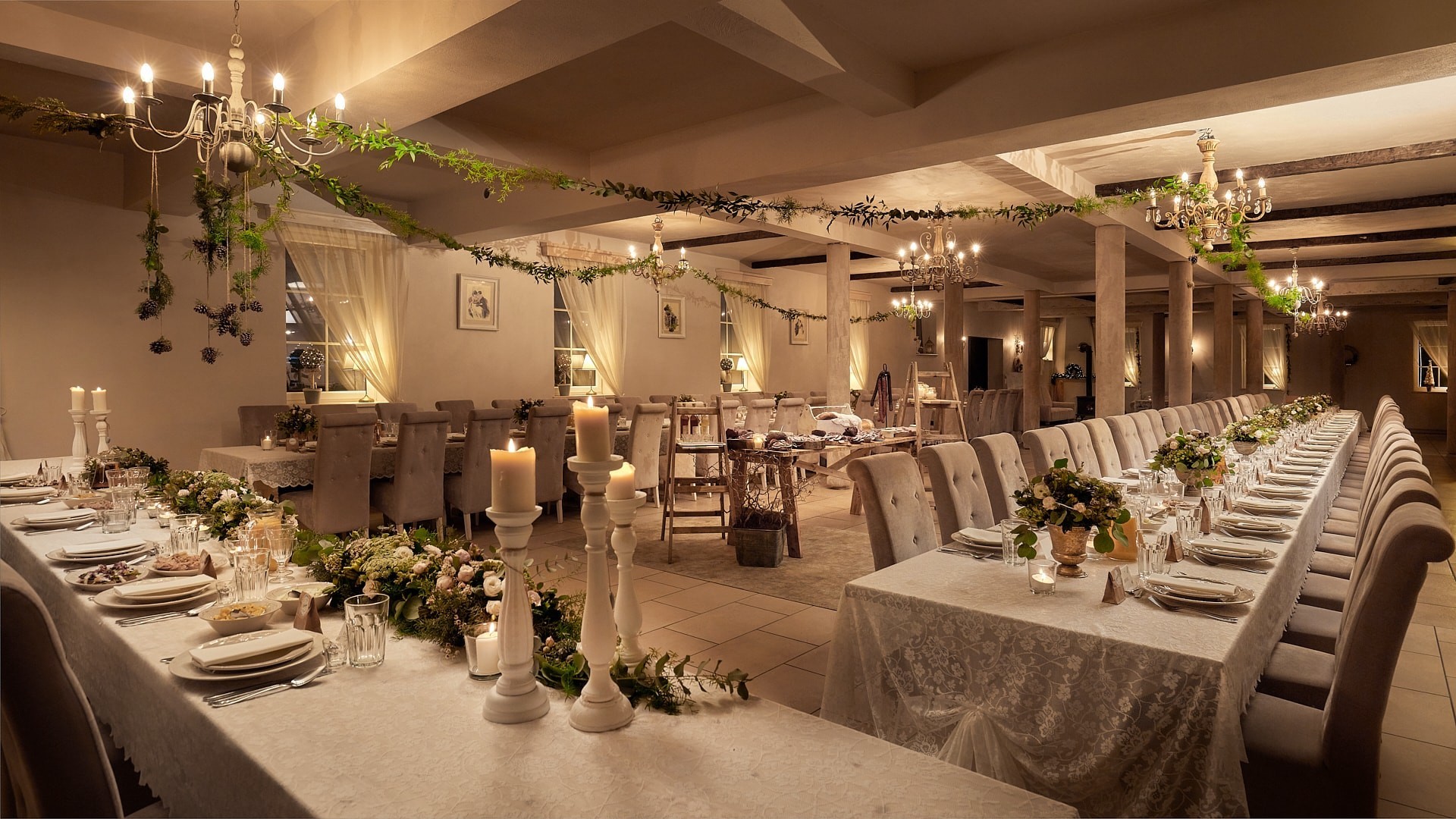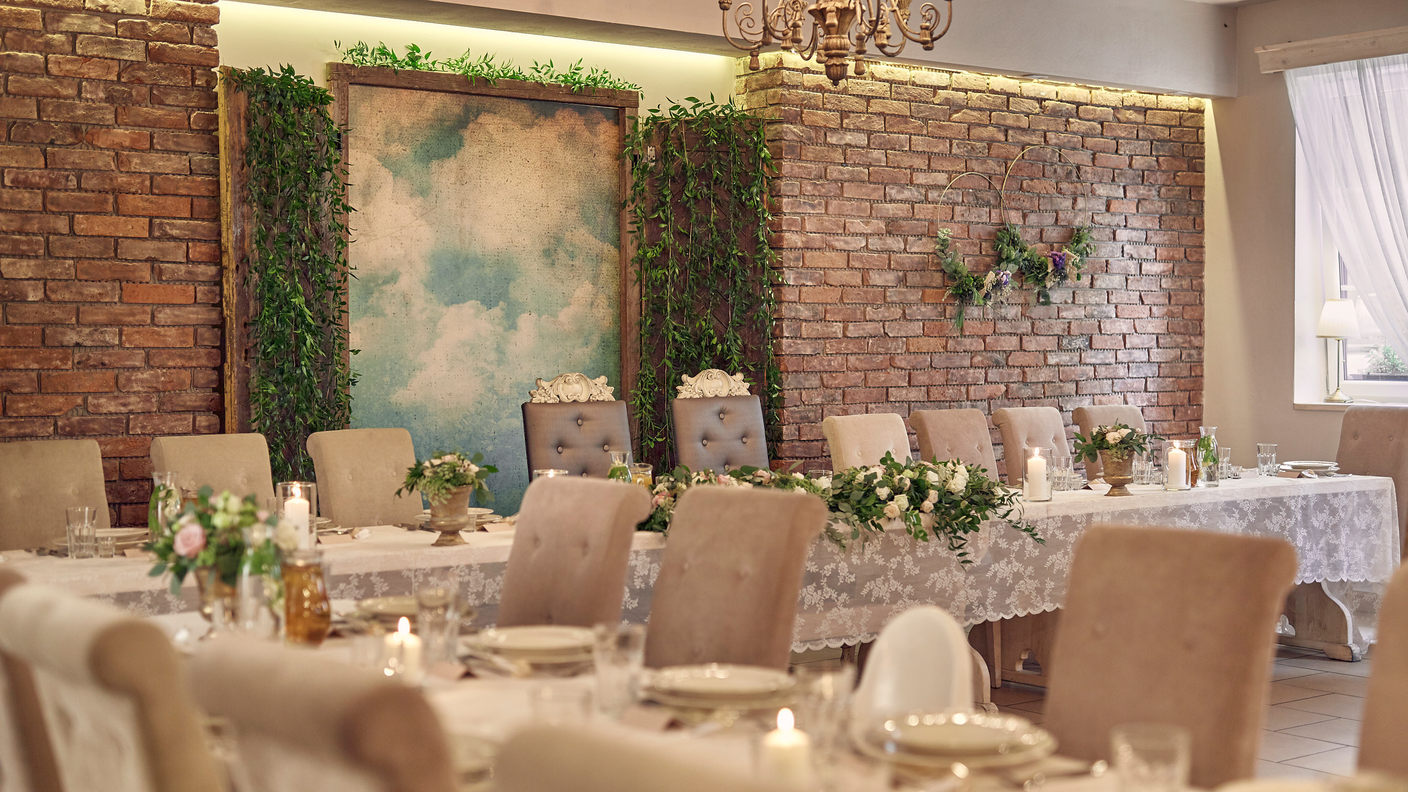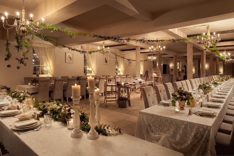 La natura e le splendide viste sono lo sfondo perfetto per un matrimonio all'aperto e sessioni di matrimonio. La sala per matrimoni del maniero è stata progettata con un'eleganza senza tempo, che consente molte possibilità di arredamento. 150 persone possono entrare nella nostra sala da ballo. Per chi è stanco di divertirsi, vi aspettano comodi divani, un ampio portico e un cortile coperto, e al primo piano ci sono 15 camere per 38 persone, di cui una con sorpresa per gli sposi.