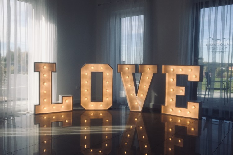 Niewątpliwie każdy pierwszy taniec jest wyjątkowym i najbardziej ekscytującym momentem przyjęcia weselnego. Naszym zadaniem jest stworzenie atmosfery baśni i przeniesienie Młodej Pary wysoko w chmury. Już bardziej romantycznie się nie da! Napisy LOVE Prezentujemy również napis LOVE. Wśród setek napisów LOVE wyróżnia nas to, że nasze literki pasują do wystroju rustykalnego, takiego trochę retro i vintage. Posiadamy również masywny i stabilny napis LOVE w kolorze białym, wpisującym się w nowoczesne i eleganckie wnętrza. Razem stworzymy ten klimat!
