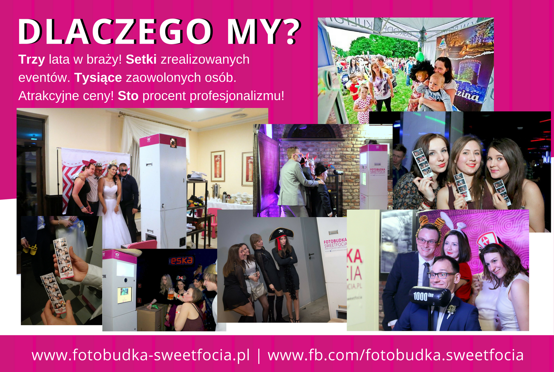 Mamy za sobą ponad 100 wydarzeń, setki zadowolonych osób i tysiące wyjątkowych zdjęć! I Wy możecie świetnie się bawić! Zaskoczcie znajomych, Zyskajcie wyjątkowe fotki i wspomnienia na lata! Fotobudka Sweetfocia rozkręci każde wydarzenie!