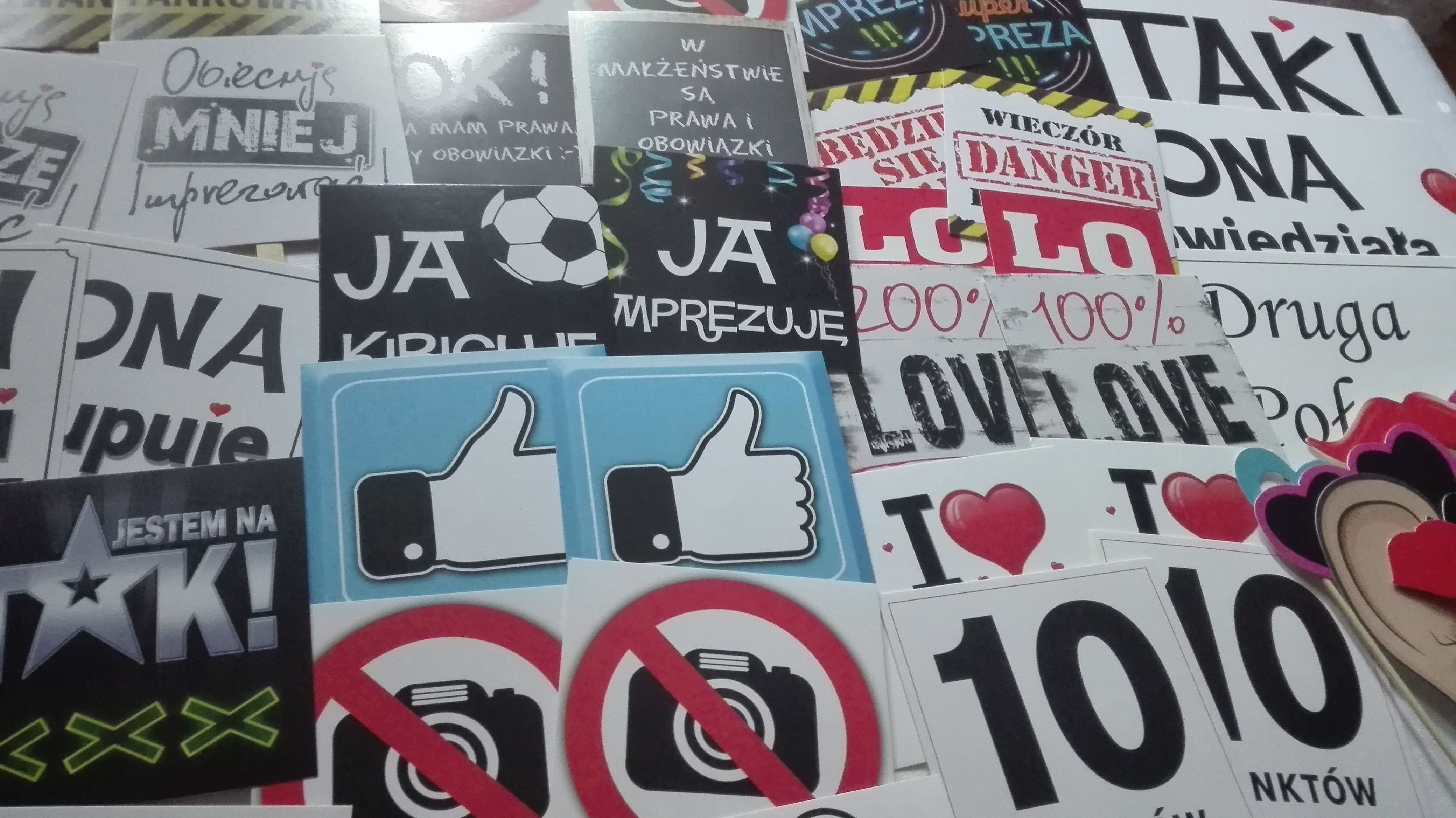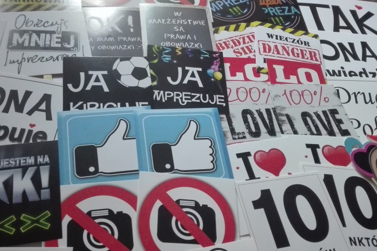 - mnóstwo gadżetów- masek, kapeluszy, tabliczek, przebrań
