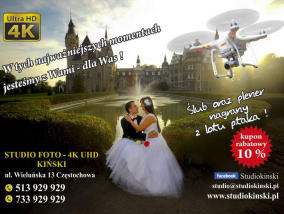 Film - Fotografia Plenerowa - Reportaż Ślubny - pakiet od 3000 - 5000złFilm z Wesela DRON na Weselu - od 1500 zł do 2000zł --FotoBudka - 1 godz 200zł - strona www.studiokinski.pl usługa Cała Polska - Można podać swoją cenę dostosujemy...