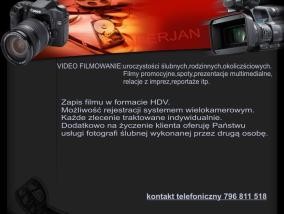 VIDEO FILMOWANIE I FOTOGRAFIA: uroczystości ślubnych, rodzinnych, okolicznościowych.Tel:796 811 518Zapis filmu w formacie Full HD,4K...Możliwość rejestracji systemem wielokamerowym.Każde zlecenie traktuję indywidualnie.Dodatkowo na życzenie klienta o...