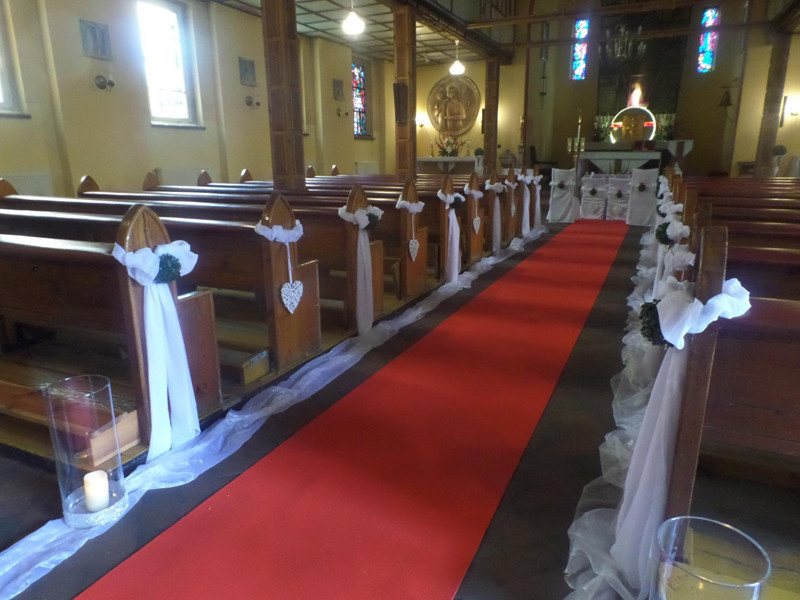 Idź do ołtarza prosto po czerwonym dywanie. Nada on twojej uroczystości magiczny nastrój. Idealne dopełnienie wystroju w kościele, na ślubie w plenerze czy innej ważnej uroczystości