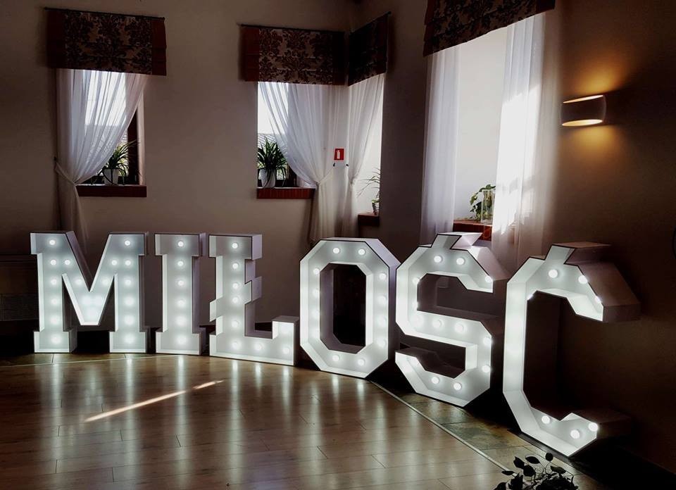 Oferujemy wynajem dużego napisu LOVE i MIŁOŚĆ w formie podświetlanych liter. Wysokość napisu - 120 cm. To idealny pomysł na dekorację ślubną czy sesję foto. Napis dowozimy na terenie województwa śląskiego, opolskiego i małopolskiego. . To doskonała atrakcja na Twój ślub i nie tylko litery dobrze spełniają rolę podświetlenia baru, Waszego stolika, sali tanecznej, scenerii na plenerze. × idealny na dekoracje sali weselnej × sesje zdjęciowe × zaręczyny