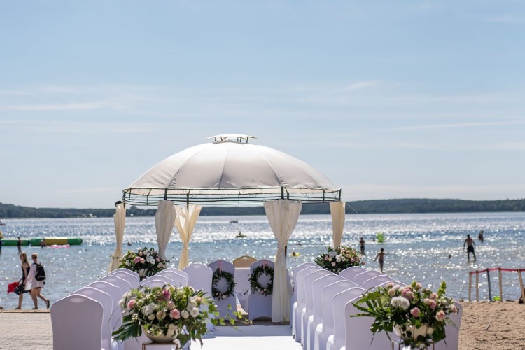 To jest Wasz wymarzony dzień! Dzień Waszego ślubu powinien być pełen pozytywnych wrażeń, które pozostaną z Wami przez wiele lat. Dajcie sobie możliwość skupienia się na sobie i Waszych gościach, a pozostałe kwestie oddajcie w ręce profesjonalistów. Cieszcie się tym dniem i po prostu dobrze się bawcie. Naszym największym atutem obok ogromnego doświadczenia oraz pięknych restauracji jest położenie hotelu nad brzegiem jeziora z własną dużą plażą, z której rozpościera się zapierający dech w piersiach widok. Do Waszej dyspozycji w zależności od preferencji i wielkości planowanego przyjęcia oddajemy kilka miejsc na organizację przyjęcia: Restauracja Blue Cafe - do 70 osób Restauracja La Perla - do 100 osób Sala konferencyjno-bankietowa 123 - do 140 osób