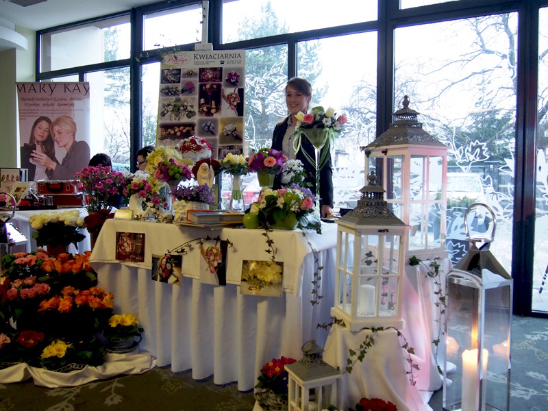 Impreza odbywała się jednocześnie w dwóch salach bankietowych, dzięki czemu nie było ciasno, atmosfera była przyjemna a ludzie uśmiechnięci. Miłym akcentem było spotkanie znajomej twarzy – Pani Doroty Lekstan - właścicielki Pracowni Florystyki Ślubnej greenFlower, która pomimo bardzo dużego zainteresowania wśród Młodych Par znalazła kilka chwil na rozmowę. Serdecznie pozdrawiamy!