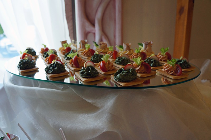 W tle słychać było muzykę graną przez zespół weselny Jurasi, a głodni i spragnieni odwiedzający mogli skosztować przekąski przygotowane przez salę weselną Rotunda oraz drinki serwowane przez barmana.