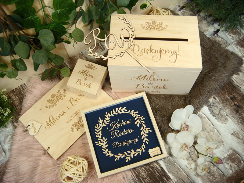 Witam, zapraszam do wizyty na stronie internetowej pracowni. Znajdziecie tam Państwo oryginalne wzory zaproszeń ślubnych wycinanych laserem, grawerowanych w drewnie wraz z potrzebnymi dodatkami jak karty menu, śpiewniki, winietki na stół czy zawieszki na alkohol. W ofercie także całe mnóstwo przeróżnych drewnianych dodatków ślubnych, jak: winietki na plastrach drewna, podziękowania dla gości w postaci drewnianych magnesów, winietki drewniane w kształcie liści, piór, łapaczy snów lub wycinanych imion, wianki, koła, serca z napisami do powieszenia na ścianie, drewniane księgi gości, drewniane zawieszki na alkohol, toppery na tort, napisy mąż, żona do powieszenia na krzesłach, komplety ślubne składające się z pudełek na obrączki, skrzyń na koperty, ksiąg gości, topperów itp. save the date w postaci magnesów na lodówkę, rustykalne księgi gości z plastrów drewna obrazy z mchu naturalnego na prezent dla rodziców, podziękowania dla rodziców w formie drzewka. Pracownia stale rozszerza ofertę! W przypadku pytań - pisz, dzwoń!