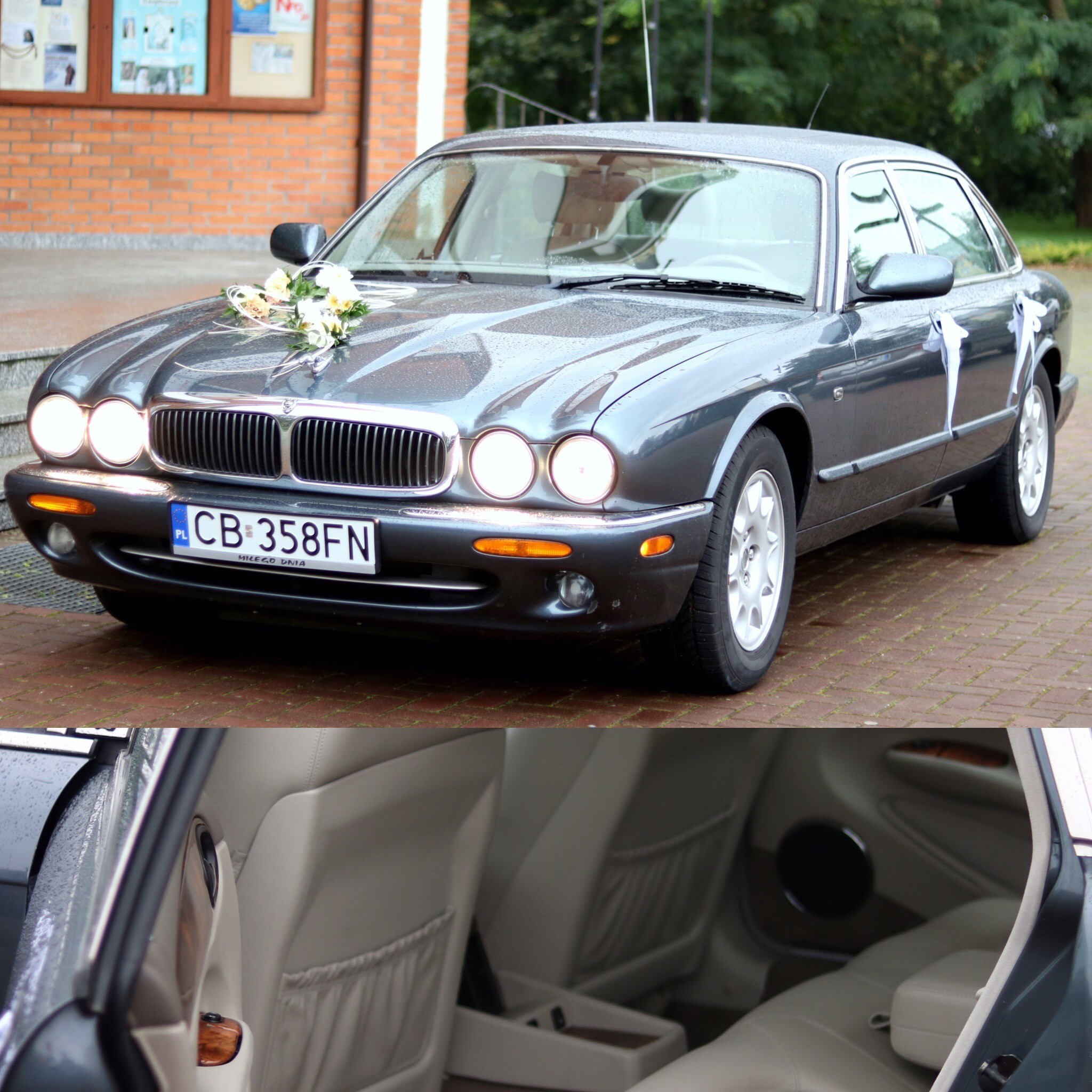 Polecamy jako auto do ślubu Jaguara XJL w wersji przedłużanej , wnętrze biała skóra