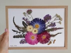 Jestem pasjonatką prasowania kwiatów. Oferuję konserwację bukietu ślubnego/okazjonalnego w formie obrazu w drewnianej ramie z podwójnym szkłem. Rama jesionowa, olejowana o wymiarach 40x50 cm lub 30x25 cm. Kwiaty prasowane są metodą tradycyjną, ręczni...