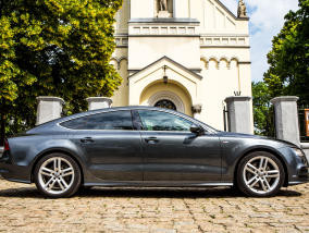 Audi A7 z pakietem S-Line Oferowane Audi A7 posiada napęd 4x4, 311 KM pod maską, które zarówno niesiamowicie brzmią jak i pozostawiają niesamowite wrażenia. Nowoczesny i ekskluzywny charakter nadają dodatki s-line w tym 19 calowe felgi, sportowe prog...