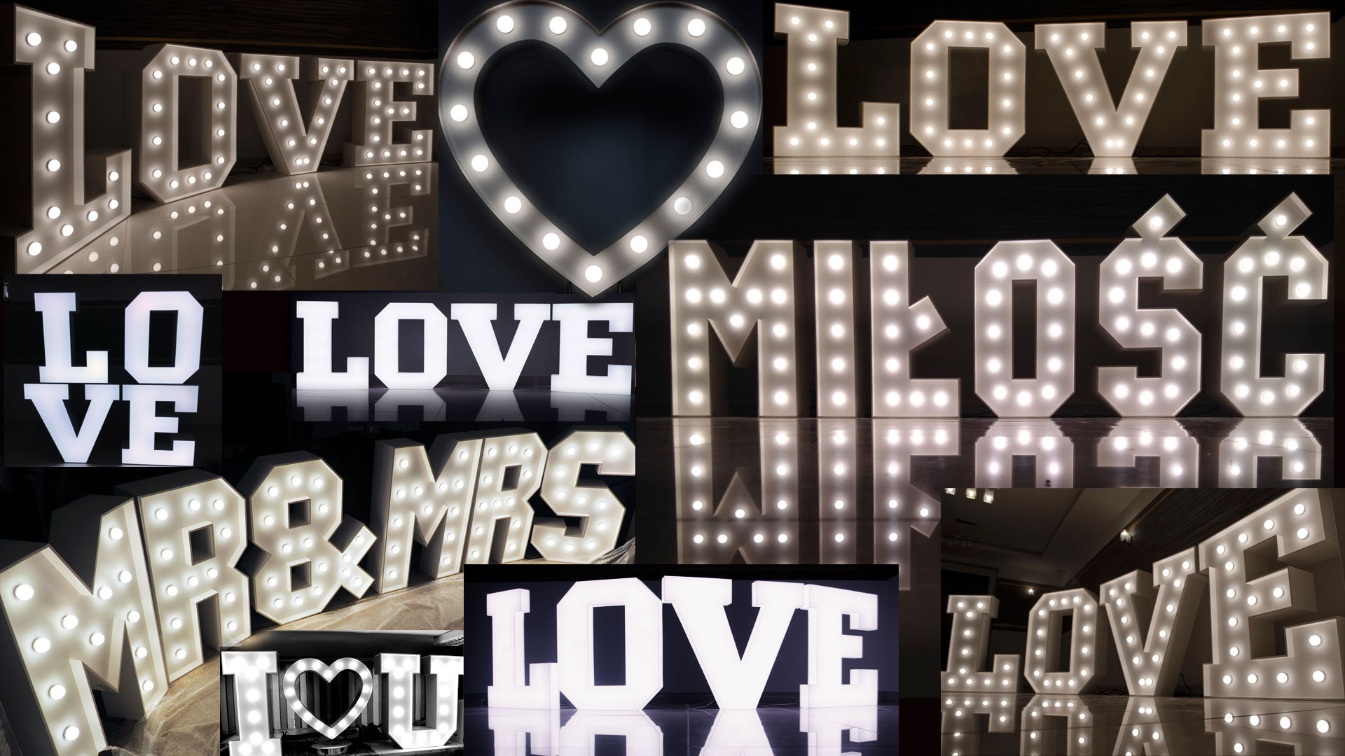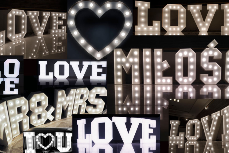 Jesteśmy największą w Polsce wypożyczalnią i zarazem producentem podświetlanych napisów i dekoracji ślubnych takich jak: