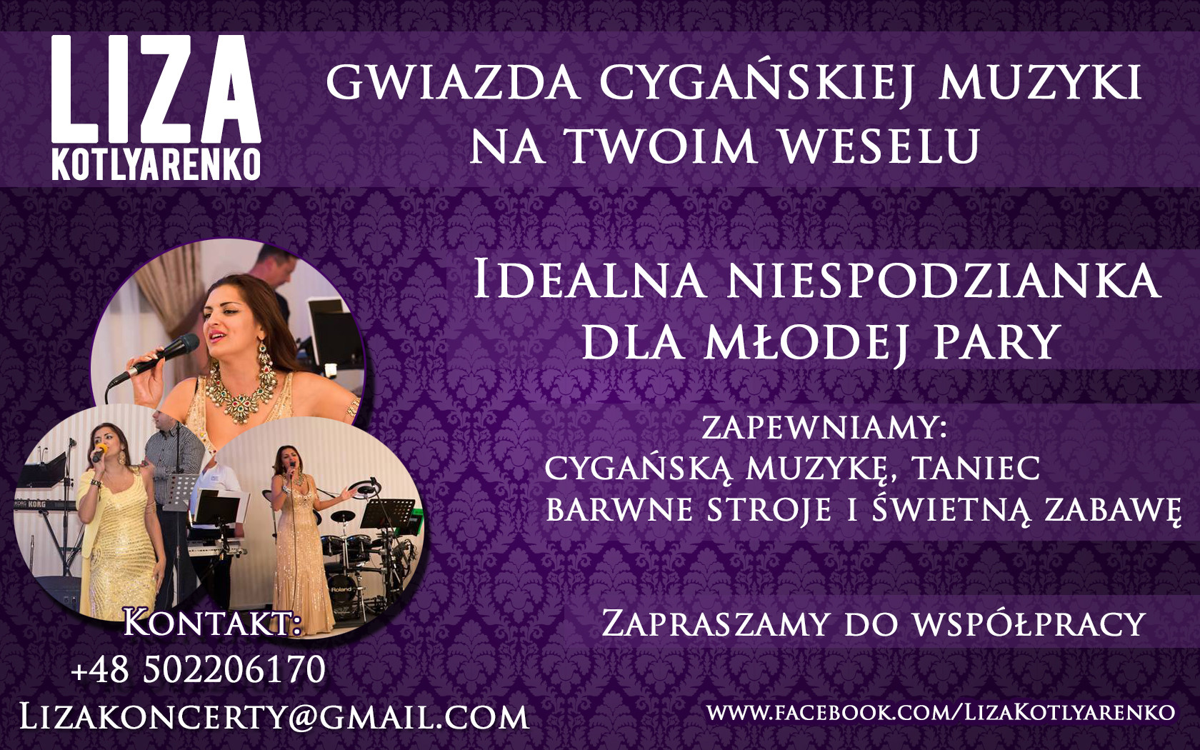 Jeśli chcesz usłyszeć Lizę na żywo, poczuć romskie rytmy, to nie zastanawiaj się dłużej. Zaproś Lizę na przyjęcie, bankiet, wesele, konferencję albo inną uroczystość.