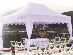 Namiot Weselny idealny na ślub w plenerze w kolorze białym lub w jednym z 21 dostępnych odcieni, o wymiarach 3x3 m z ozdobną falą na falbanach oraz plisowanymi zasłonkami na nogi. Postanowiliśmy stworzyć doskonałe rozwiązanie dla wszystkich, którzy...