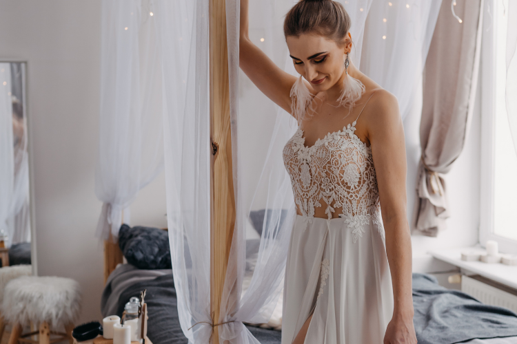Korzystamy tylko z najlepszych materiałów. Mamy dostęp do najbardziej popularnych jak i bardzo niszowych koronek. W naszych modelach znajdziesz koronki typu: “Chantilly”, Alençon (królowa wśród koronek), z efektem 3D, wyszywanych koralikami, perełkami czy cekinami.