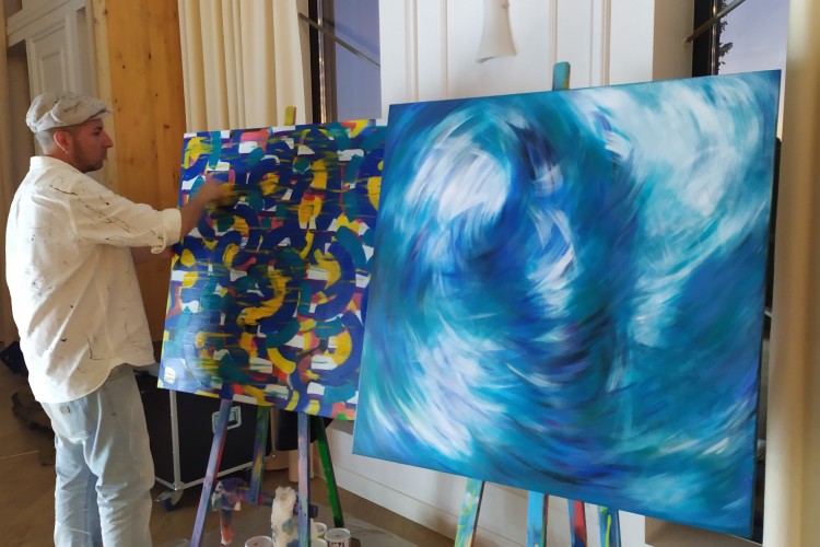 Malowanie na żywo podczas wesela - nowy trend - pełna emocji i kolorów abstrakcyjna sztuka współczesna