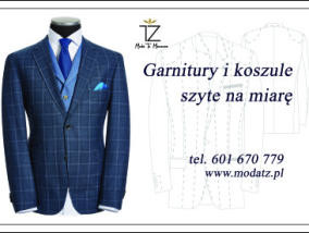 Witam! Panom otwierającym nowy rozdział swojego życia proponuję wejście w niego w garniturze uszytym na miarę lub w garniturze firmy Wilvorst. Jakość tkanin i wykonanie spełnią oczekiwania najbardziej wymagających. W ofercie również buty szyte ręczni...