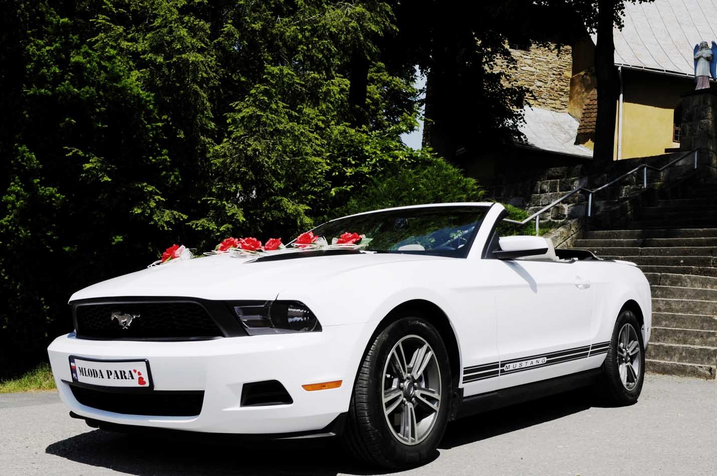 Model który oferuję to najbogatsza wersja. Beżowe skóry, kolorowe zegary i delikatne detale z logo Mustanga sprawiają że auto prezentuje się wyśmienicie i idealnie pasuje na ceremonię weselną.Biały kbariolet, idealnie podkreśli uroczystość. Piękny dźwięk silnika doda smaczku przejazdowi oraz rozluźni atmosferę :) Ten dzień stanie się jeszcze bardziej wyjątkowy i niepowtarzalny, a fotografie z uroczystości zyskają niepowtarzalną klasę i styl!