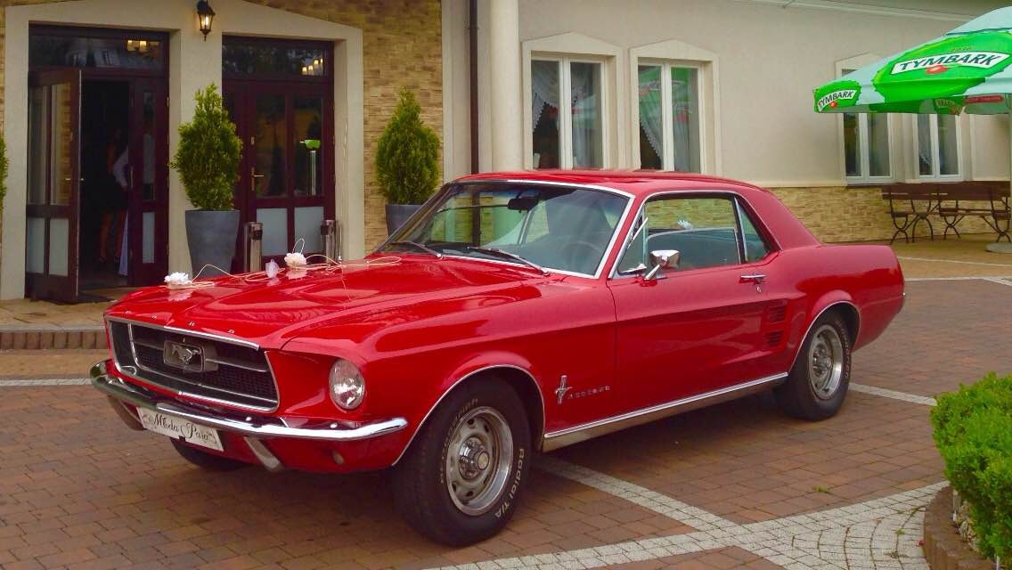 Oferuję pięknego Mustanga z 1967r do wynajęcia na uroczystości. Odrestaurowany w 2011 roku, piękny nowy lakier krwistoczerwony (oryginalny z rocznika). Wnętrze jasnobrązowa skóra (vcp-fabryczna). Silnik 4,7l V8 i wydający potężny grzmot układ wydechowy.