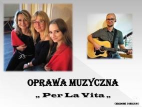 Oferujemy państwu profesjonalną oprawę muzyczną ślubu kościelnego, rocznicy i innych uroczystości kościelnych. Zespół "PER LA VITA" tworzą osoby, które posiadają wieloletnie doświadczenie polegające na oprawie muzyczno - słownej...Muzyka towarzyszy...