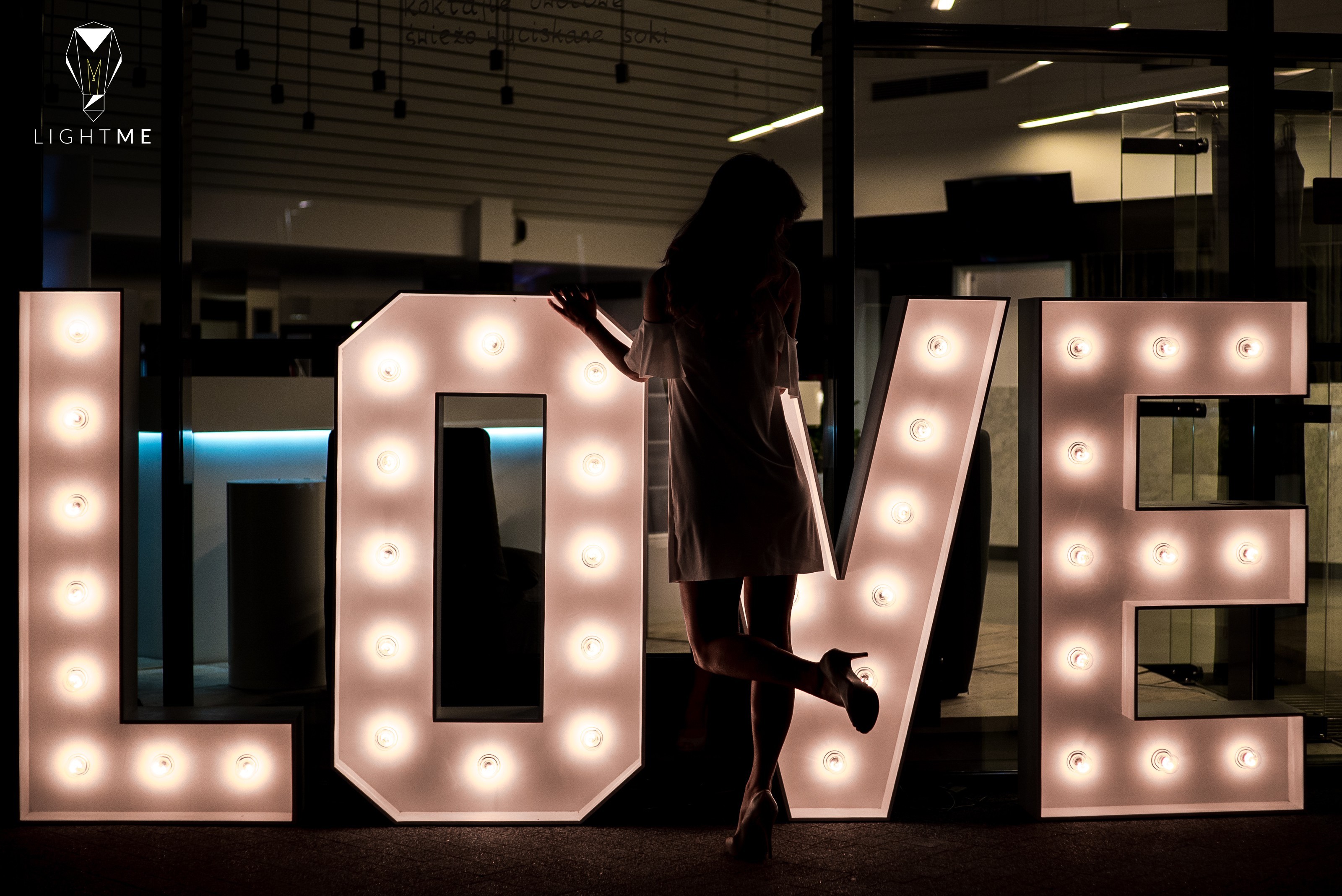 Napis LOVE/litery świetlne/oświetlenie sali