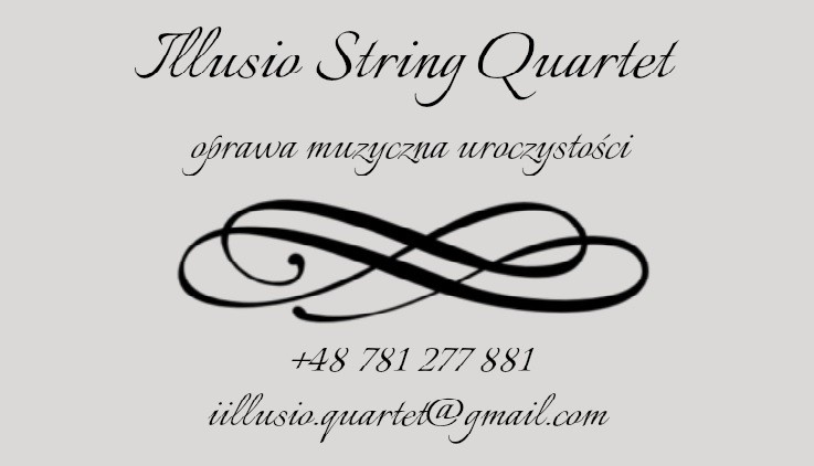 Jesteśmy grupą zawodowych muzyków, studentek Akademii Muzycznej w Katowicach. Występ naszego kwartetu – Illusio String Quartet - może być wyjątkową ozdobą i niezapomnianym elementem każdej Państwa uroczystości. Oferujemy oprawę muzyczną ślubów, rocznic i innych wydarzeń, takich jak zaręczyny, urodziny, chrzciny itp.