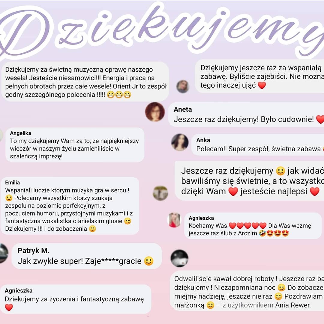 Zapraszamy do odwiedzenia naszej strony na portalach Facebook oraz Instagram znajdziecie tam państwo najnowsze relacje z wesel oraz innych uroczystości.