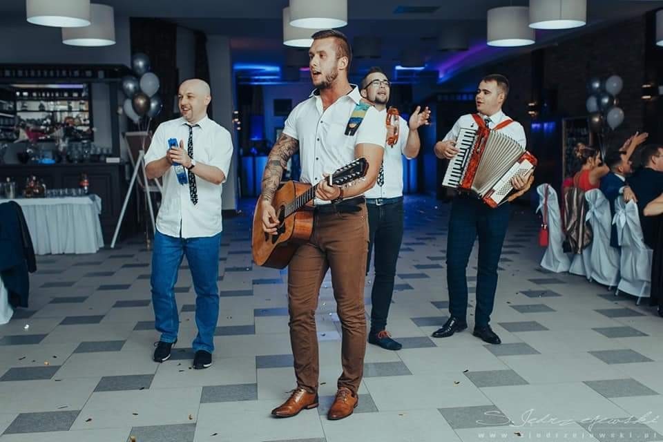 Oferujemy Państwu profesjonalną obsługę przyjęć weselnych w 100% na żywo. Pełen instrumentalny skład: - Instrumenty klawiszowe ( sakosofon, akordeon) - gitara basowa - gitara elektryczna i akustyczna - perkusja - damski wokal główny -Bogaty repertuar a w nim największe przeboje polskie i zagraniczne.