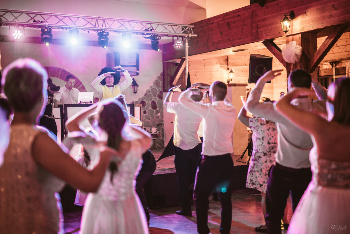 Pełne prowadzenie przyjęcia, począwszy od przywitania Państwa młodych i gości, przez bloki muzyczne prowadzone przez DJ-a oraz zabawy i tańce animacyjne z wodzirejem, w tym zabawy oczepinowe (wedle życzenia).