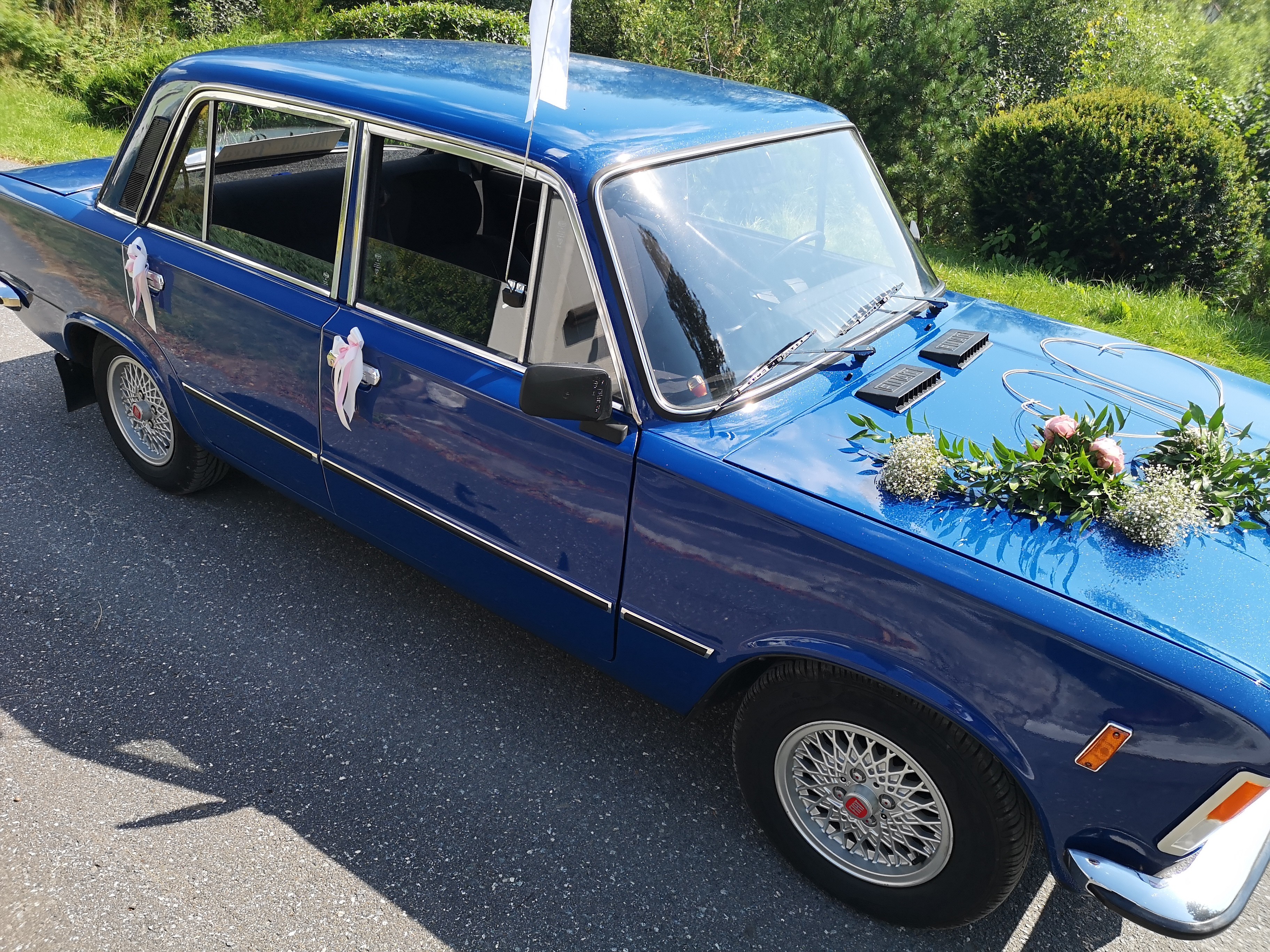 Oferuję samochód Polski Fiat 125p, po gruntownej renowacji w latach 2018 - 2019, z wykorzystaniem oryginalnych części. Do lakieru dodane zostały opiłki metalu, co powoduje, że w słońcu samochód błyszczy się. Wnętrze schludne i zadbane.